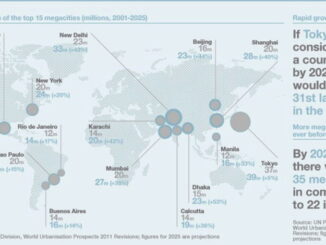 By 2025 the UN projects there will be 35 megacities (10m+) in comparison to 22 in 2011. Population growth of the top 15 megacities millions, 2001 to 2025 (projection) Tokyo 37m 39m (+5%) New Delhi […]