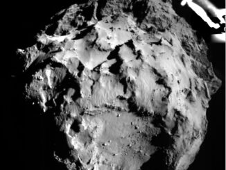 Today 12 November, a lander called Philae from ESA’s Rosetta spacecraft made the first-ever landing on a comet, Comet 67P/Churyumov–Gerasimenko. This image of the comet 3 km away was taken by Philae before it landed.