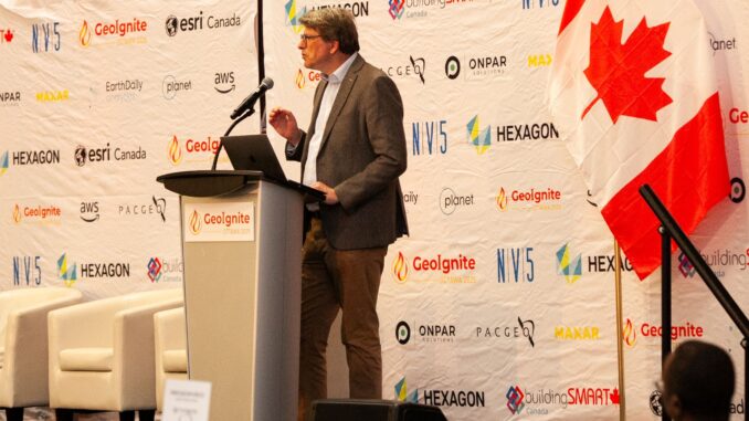 Last year, in my keynote at GeoIgnite 2025, I spoke about how Canadian geospatial innovations can tackle environmental problems. I mentioned, for instance, RADARSAT’s Arctic monitoring capabilities, SmartICE’s integration of traditional knowledge with satellite data, along with precision agriculture optimizing farm operations across the Prairies.