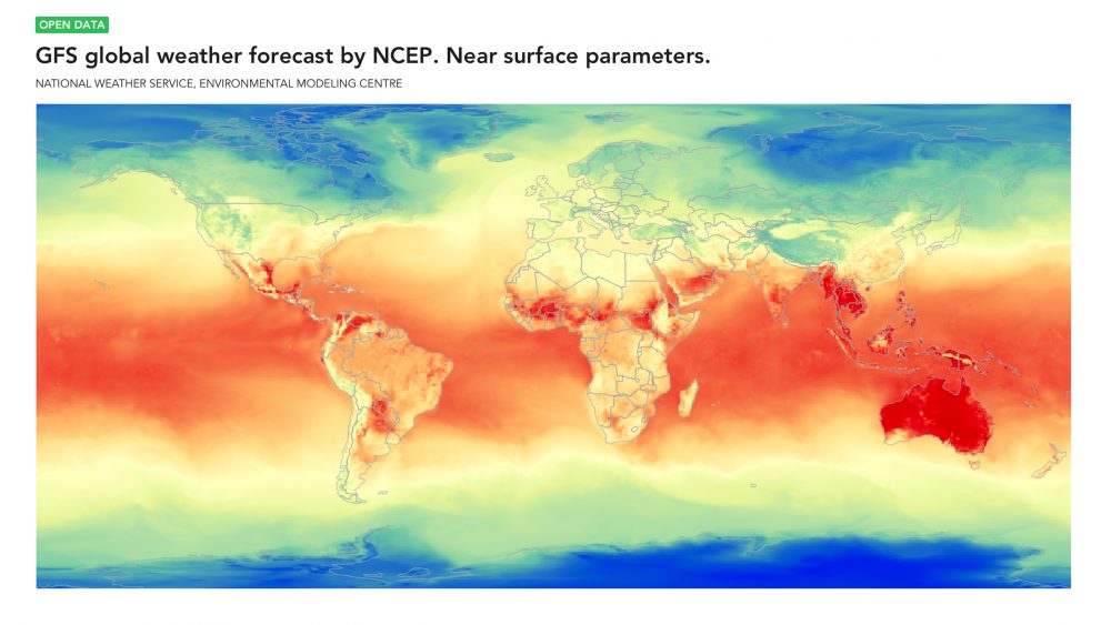 Starting today API users can freely access three global forecast models – NOAA WaveWatch III, NCEP Global Forecast System (GFS), and HYCOM Global Ocean Forecast. Through a mixture of automated discovery, user recommendation, and manual curation, we will continuously expand and update our catalog of available datasets. This includes not only open datasets, but commercial data as well. Planet OS is currently working with a select group of data vendors, including CustomWeather, The Climate Source, TCarta Marine, Weather Decision Technologies, and Freese-Notis Weather to bring their products to our platform.