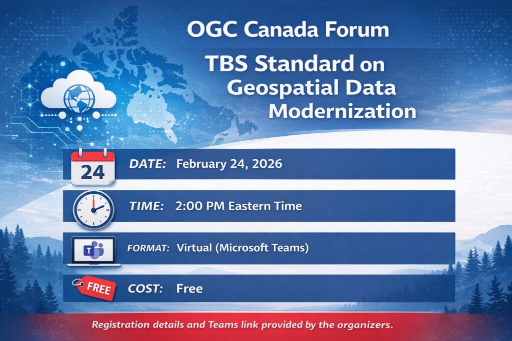 The OGC Canada Forum is convening a national discussion, in partnership with Natural Resources Canada, to explore how the Standard on Geospatial Data can be modernized while maintaining interoperability and supporting innovation.