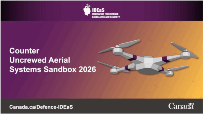 Ottawa, Ontario – The Department of National Defence (DND) and its Innovation for Defence Excellence and Security (IDEaS) program invite innovators, industry, and academia to apply for participation in the Counter-Uncrewed Aerial Systems (CUAS) Sandbox 2026, to be held September 14 to October 9, 2026, at Defence Research and Development Canada – Suffield, Alberta.