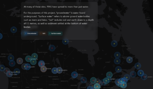 By mapping PFAS sites in relation to groundwater wells and populations, the interactive tool helps reveal which communities are at risk of exposure through local water sources. This makes the environmental data relevant and actionable at a community level. Maps like this make environmental risks accessible and understandable to the public and policymakers. This multi-layer spatial analysis lets users explore not only where PFAS is found, but how it intersects with human and ecological systems.