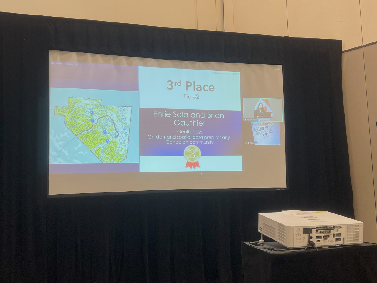 In the weeks leading up to GeoIgnite 2025, the Canada Centre for Mapping and Earth Observation (CCMEO) joined with GoGeomatics to host the CCMEO Hackathon on Building Reslience with GEO.ca. The Hackathon provided an opportunity for students from around Canada to solve real-world problems using data from GEO.ca and open-source software. With the theme of emergency response and readiness, students worked individually or in pairs to produce a product and video demonstration within a one-month period. On May 12, the results of the Hackathon were announced at GeoIgnite 2025 being held in Ottawa, with the first, second, and the third place winners having the opportunity to share their projects and answer questions.