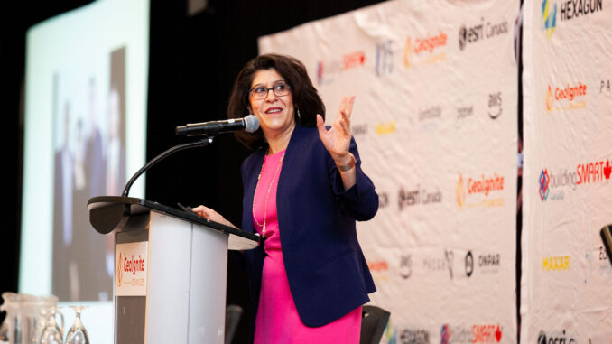 What happens when geospatial stops following and starts leading? That’s the question Dr Nadine Alameh posed to the audience during her keynote at GeoIgnite 2025 in Ottawa. She urged the geospatial community to rethink its role — not as a support function, but as a force driving bold decisions, intelligent systems, and real-world change.