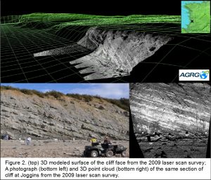 Tristan will also construct a new 3D-modeled surface of the cliff face. This will be compared to the modeled surface from the 2009 baseline AGRG survey.