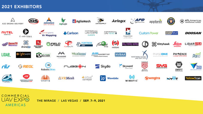 PORTLAND, MAINE – USA, May 25, 2021 – Organizers of Commercial UAV Expo Americas, the leading commercial drone trade show and conference in North America, have announced an impressive list of more than 70 exhibitors from around the globe who have already signed on to exhibit at the 2021 event, which will take place September 7-9, 2021 at The Mirage Las Vegas, Las Vegas NV.