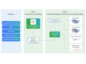 Population models: The Population Dynamics Foundations model synthesizes multiple datasets to characterize human behavioral patterns within a spatial context. It represents the built environment using map data, the natural environment through weather and air quality information, and human behavior via Search Trends and anonymized busyness metrics.
