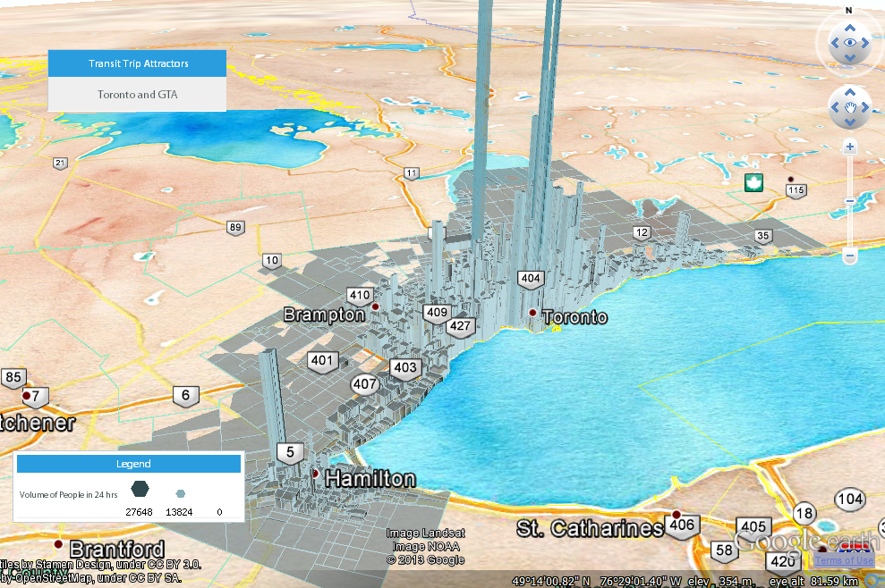 Arguably the canvas in which the model stands on can be just as important as the beauty and accuracy of the model itself. Offered through the Appeal Version of the software, the new “Digital Globe Canvas” option, targets designers of the built environment to control the base-map wrapped around the Google Earth globe. The selection of graphic styles is provided by various sources, including MapQuest, OpenStreetMaps and the creative works of Stamen Design. This is also a great feature for companies wanting to market or visually communicate their information to clients and stakeholders in a new way.