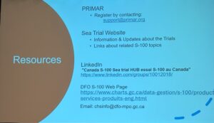 He highlighted that Canada is currently the only nation conducting sea trials with the full S-100 layer stack — from base charts and bathymetry to real-time water levels and navigation warnings. This positions CHS as a global leader in S-100 implementation, a fact echoed during the session by participants from international hydrographic offices.
