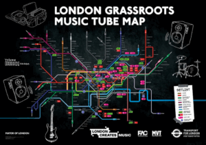 London’s music history is quite extensive, and what better way to showcase this than a than a tube map of all the grassroot music scenes. Different lines are highlighted and showcases the venues associated with the different lines. Geospatial data can also help map out the history of the arts, and the graphic below best showcases this. Read more here on what the Mayor of London said about this music campaign.