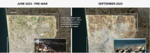 To better understand the scale and impact of the conflict in Gaza, a story map has been developed using a combination of destruction maps, displacement data, and satellite imagery from Copernicus Sentinel-1. This map provides a powerful before-and-after comparison of key areas across Gaza, showing the extent of damage to neighborhoods, critical infrastructure, and agricultural land.