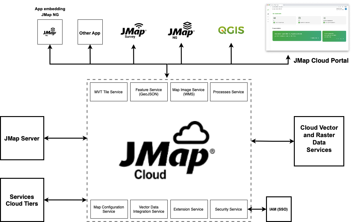 JMap Cloud allows users to access different platforms via APIs. API keys can be created in the Organization section by those with an Administrator role. One example of a platform that can be accessed via an API is JMap Server – an older product from the JMap line – which allows users access data hosted on the platform. The continued interoperability of other platforms alongside JMap Cloud is an ongoing process.
