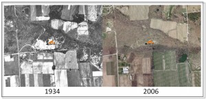 Figure 1: Two images of a historic landfill location discovered by comparing a 1934 air photo and a satellite image from 2006