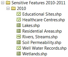 Datasets: Rivers, Lakes, Wetlands, Well Records, Soil Permeability, Residential Areas, Schools, Health Care Centres, Landfill Location Database