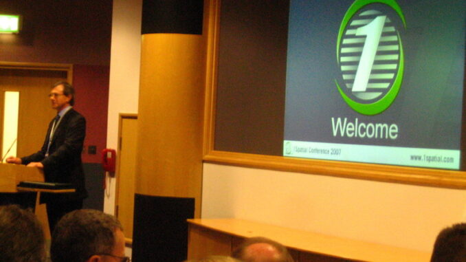 The other aspect of the conference that made it outstanding were the folks who attended. There were barely enough seats in the main auditorium in the OS business centre. In was great to see so many people that I hadn’t seen for a while including all the folks from 1Spatial, Mike Sanderson, Steven Ramage, Chris Wright, Graham Stickler, Paul Watson, and Chris Tagg. I was pleasantly surprised to see Ed Parsons, now of Google, Ed Riegelmann from CH2MHill, Kevin Challen from Infotech, Faisal Al-Tamimi from Saudi Arabia, Peter ter Haar, Graham Vowles, and Carsten Roensdorf from the OS, Peter Mahan from United Utilities, David Miller from eSpatial, John Hartshorn from Bentley, and many others. And there were many folks that I met for the first time. In fact there were so many interesting folks to chat with that it was hard to find time to go to the sessions. I did manage to hear Ed Parson’s very interesting talk about Google and what Google was doing. Ed was with the OS until the end of year and just joined Google a month ago or so. Ed always has an interesting perspective on things which you can experience yourself on his blog.