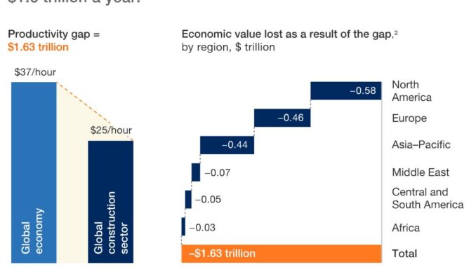 The $10 trillion global construction industry is facing a crisis. For many of the world’s advanced economies productivity in the construction sector has been stagnant for years. According to a McKinsey study whereas the average industrial worker adds $37 of value for every hour worked, a construction worker only adds $25. It is estimated that this productivity gap costs the global economy $1.6 trillion every year.