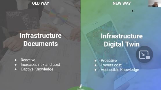 An infrastructure digital twin provides immediately accessible information to all your assets for all stakeholders through a subscription service. It’s a real time, live presentation of information coming from a database and it is integrated with all your other systems. For critical budgeting operations and maintenance, you have immediate access to everything about your assets; their history, their replacement cost and their current cost that enables you to justify your financial demands, be it a budget request for next year or a bid bond for a major project.