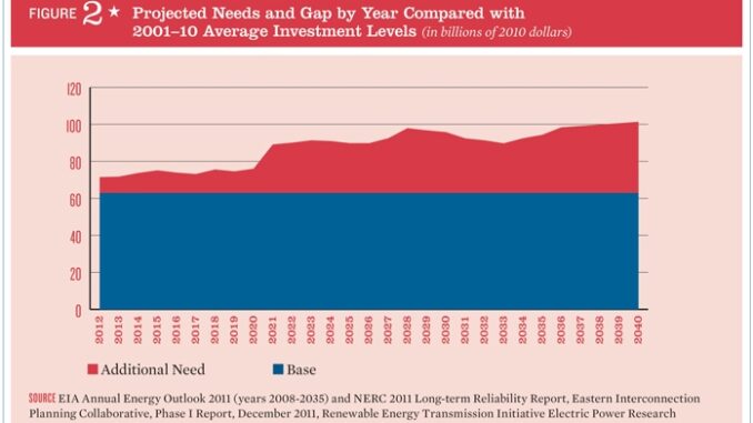 The American Society of Civil Engineers (ASCE) in its latest Failure to Act Report on electric power in the US is projecting that current trends will lead to funding gaps in electric generation, transmission, and distribution that will reach $11 billion per year and a toal accumulated gap of $107 billion by 2020. In 2020, 88% of the investment gap will be in distribution and transmission infrastructure while about 11% of the gap will be in generation infrastructure.