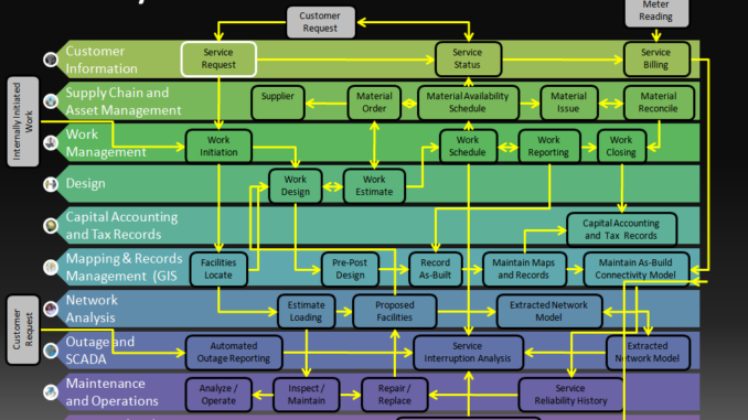Typically, business processes are characterized by paper and many manual data hand-offs that degrade the quality and currency of data. In addition, often it is not clear who the data owner or custodian is, which can mean no accountability. The net result is that unreliable, out of date data makes it difficult to translate data into actionable information. If nine different groups are maintaining data about poles, for example, there is the potential for nine different assessments on the state of the company’s pole assets. To quote Dave Sonnen, “That is a solid illustration of the data integrity challenges that organizational structure necessarily causes. Data gets tweaked every time it crosses one of the bars.”