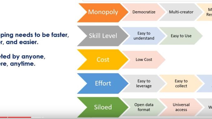 The utility mapping industry needs some fundamental changes. We need to move away from the monopoly that exists right now. There is just a handful of companies that are able to go out and collect underground utility data. We need to democratize data collection so that many more people can collect this data, targeting a crowd sourced approach and enabling multiple creators or collectors providing this data. This distributes the responsibility for the data as well. The more distributed the responsibilities, the lower risk and the lower the cost of failures will be.