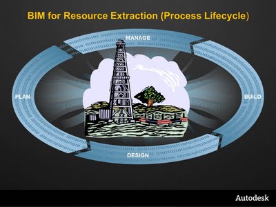 For companies and firms engaged in identification, design, construction and maintenance of extraction processes, what is needed is a streamlined process of design and data management that reduces errors, is model based, supports 3D visualization and simulation, and capable of sustainable workflows. BIM (Building Information Models) is being adopted by engineers, designers, geotechnical scientists, and operators are using to gain the most efficient process for resource extraction. BIM for Resource Extraction is comprised of various workflows focused at site identification, design (piping, plant, transportation), asset tracking, hydrological analysis and asset management.