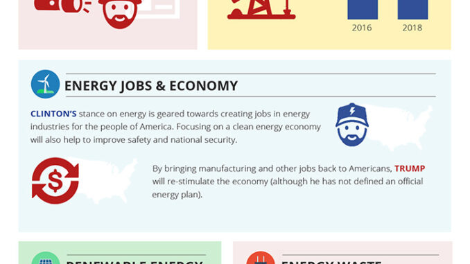 Electric Choice has created a compilation of Clinton and Trump’s announced positions on energy and related policies. Some of the highlights: