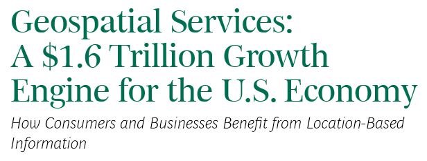 The BCG report estimates the economic impact of the geospatial services industry on government, business, and consumers is estimated to be $1.6 trillion in revenues (greater efficacy) and $1.4 trillion in cost savings (greater efficiency).
