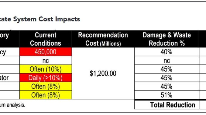 Thirteen recommendations have been proposed by the Infrastructure Protection Coalition on a state-by-state basis to eliminate and mitigate these costs. It is estimated that these measures would eliminate $40 billion in damage and waste costs and that these recommendations could be implemented for approximate $1.2 billion over a 3- to 5-year timeline. The ROI for implementing these measures is estimated to be $33 for every $1 invested in improving the system. Unquantifiable benefits such as severe damage reduction and public safety or societal benefits are not included in these benefits.