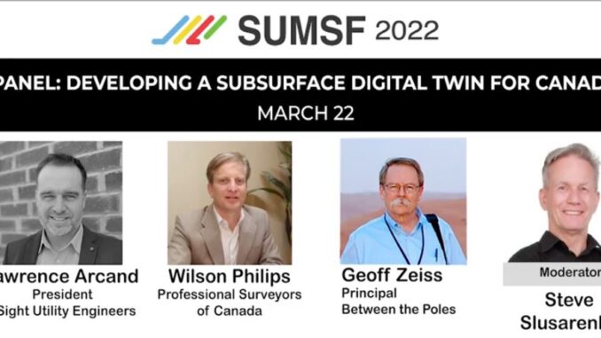 This article is based on the panel discussion on Developing a digital twin for Canada at the Subsurface Utility Mapping Strategy Forum (SUMSF). The Moderator was Steve Slusarenko and the panellists were Lawrence Arcand, president of 4Sight Utility Engineers, vice-chair of the CSA S-250 committee, and chair of the Transportation Association of Canada’s (TAC) Public Utilities Management Subcommittee, Wilson Phillips, representing Professional Surveyors Canada and who has been working on finding a solution for managing underground infrastructure data in Canada for a decade, and Geoff Zeiss, Principal at Between The Poles, who has been following and documenting underground infrastructure data systems worldwide for 25 years.
