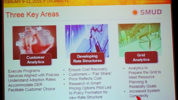 At DistribuTECH Nancy Bui-Thompson, President of Sacramento Municipal Utilities District (SMUD), gave an insightful presentation about her utility from the perspective of an elected official. I think that Nancy is one of the first examples of an elected official presenting at DistribuTECH. SMUD is and has been for some time one of the most forward-looking utilities in North America. It was the first California utility to reach 20% renewable power and the first to commit to 33% renewables. It is also one of the most energy efficient utiltiies in California.