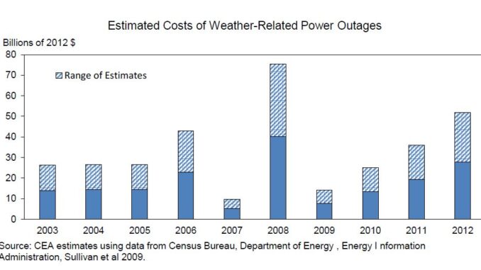 The White House has just released a report The Economic Benefits of Increasing Electric Grid Resilience to Weather Outages that was prepared by the President’s Council of Economic Advisers and the Department of Energy’s Office of Electricity Delivery and Energy Reliability, with assistance from the White House Office of Science and Technology.