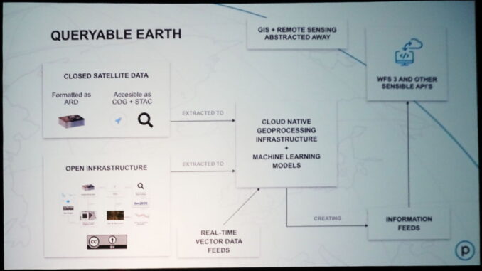 Taken together Chris suggestions and work underway represent a roadmap for the open source geospatial community to lead in making the huge volumes of satellite imagery and other data queryable and able to generate actionable information.