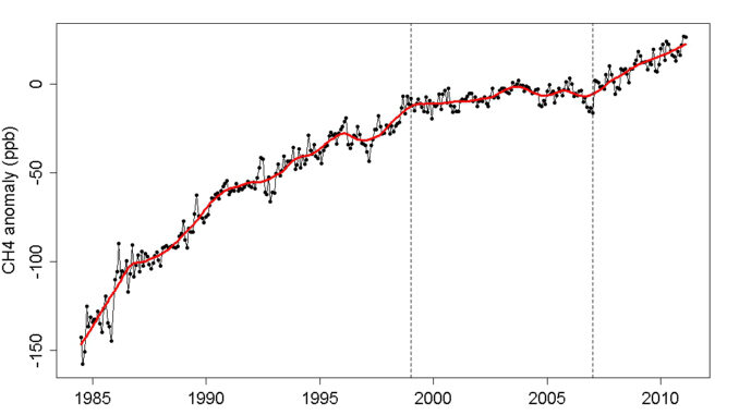 Methane is one of the more potent greenhouse gases for global warming. The concentration of methane in the atmosphere stabilized from about 1999 to 2007, but since 2007 began rising again. A recent study suggests that the more than 30% increase in U.S. methane emissions over the 2002–2014 period could account for 30–60% of the global growth of atmospheric methane seen in the past decade.