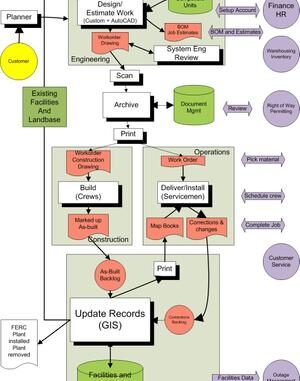 telecoms like the one I have included is the problem of islands of technology (CAD, GIS, …) connected by paper-based information flows. For example, in many organizations the as-built problem is the direct result of paper flow, paper as-builts coming back from construction are redigitized into the records database. Organizations in all sectors are looking to reduce the flow of paper, not only as part of a green initiative to save trees, but also because paper flows result in data and process redundancy, inhibit productivity, and impair the agility of the organization. Organizations have looked at what has happened in the banking industry, airline industry, and web-based retail, and can see the benefits of reducing paper-based information flows.