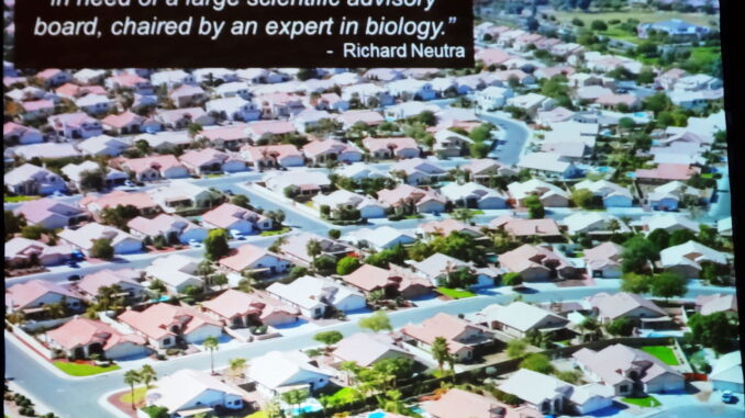 Geodesigning really isn’t new. People have been making this type of design decisions since we have been had buildings and towns. Many cities are near water bodies for obvious reasons. Some cities are not near water for other reasons, for example, to avoid mosquitoes and malaria. Eric provided a classic example of bad and good geosdesign in the U.S. by comparing a standard American suburban development with Frank Lloyd Wright’s renowned waterfall house.