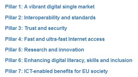 The Digital Agenda is the European Commission’s strategy for using Information and Communication Technologies (ICT) to the benefit Europe’s society and economy for the period 2010-2015. The Digital Agenda is linked to various other EU policies, such as the single market, consumer protection, research and innovation, industrial policy, regional and rural development, environmental sustainability, skills and culture, or healthcare. It is expected to contribute to major challenges such as climate change and the aging population.
