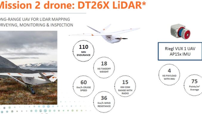 At ILMF 2019 in a very interesting talk Paolo Guzzini of Delair described how BVLOS drones has been deployed to map transmission lines in remote areas of Iceland. Delair conducted two surveys on behalf of EFLA Consulting Engineers, a general engineering and consulting company. EFLA needed to map existing power lines and survey an area where Landsnet, the main transmission system operator in Iceland, planned to build a new power line between two cities. Iceland’s airspace regulations allows BVLOS UAVs to be used in areas that are not densely populated. Delair deployed fixed-wing drones to gather two types of data: photography and LiDAR. The drones were programmed to fly a predetermined flight plan so the pilot had to only monitor the drone’s progress and be available for emergencies. Delair’s drones were able to capture comprehensive data along the planned route and deliver the processed results to the client the next day — all at a fraction of the cost of hiring a helicopter or ground crew. UAVs with a range of 110-120 minutes flew for up to 10 km per flight. In one case the UAV flew a total of 70 km with a 21.4 megapixel photo camera to capture a corridor of 200 m width to an accuracy of 0.5 m vertical and 0.2 m horizontal accuracy. The actual vertical accuracy achieved was 0.15 m. In a second mission a UAV flew at 100 m a corridor 10 km in length with a LiDAR camera to capture a corridor 200 m wide with the objective of vertical accuracy of 0.5 m and horizontal accuracy of 0.2 m. The actual accuracy achieved was 4 cm horizontally and 2 cm vertically. The advantage of using LiDAR is that it can achieve better accuracy in location especially in the vertical dimension. In addition the LiDAR approach was able to detect detect conductors and poles. In both cases the range of the flights was limited by weather conditions, radio range (15 km), and weight of the camera payloads.
