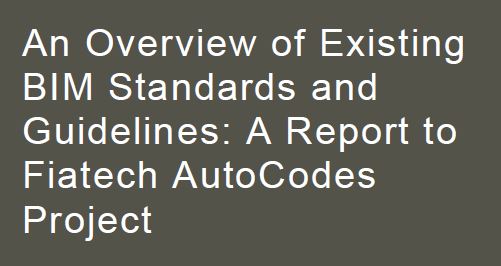 One of the activities of the AutoCodes project was to commission a review of existing, publicly available Building Information Modeling (BIM) standards and guidelines including those that are in development and completed. The research goal is to establish a foundation for developing modeling requirements and methodologies for automated code checking.
