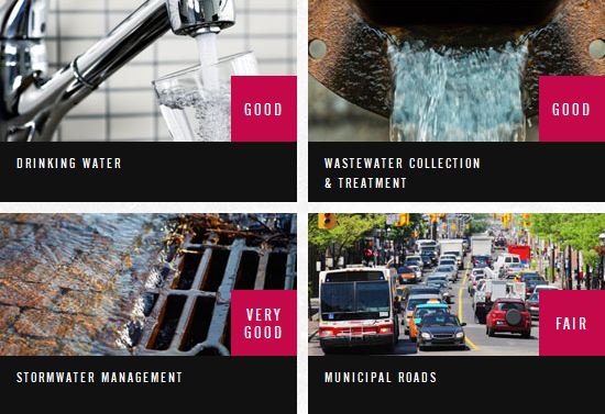 The Report Card assesses the state of Canada’s municipal drinking water, wastewater, storm water and road systems at a national level based on survey results from 123 municipalities representing about two thirds of Canadians.