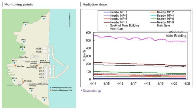 - 156 μSv/h at the main gate