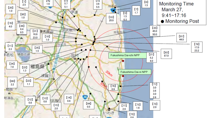 50.0 μSv/h 2011/3/27 11:30 (22:30:00 Saturday March 26 ET)