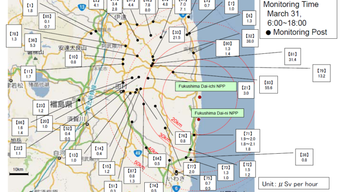MEXT has published radiation readings for locations 20 km and more from the nuclear power plant.