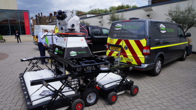 Technics demonstrated a towable Pegasus: Stream array that combines above and below surface multi-sensor scanning. It includes a Leica Pegasus: Two scanner for above ground features and a Stream EM array for below ground objects. Technics told me that the combined multi-sensor scanner can be towed at up to 12.5 miles an hour (about 15 km/hour), though 5-10 miles an hour is more typical. Technics was a major supporter of the development of the PAS128 standard and offers a PAS128 interpretation service.