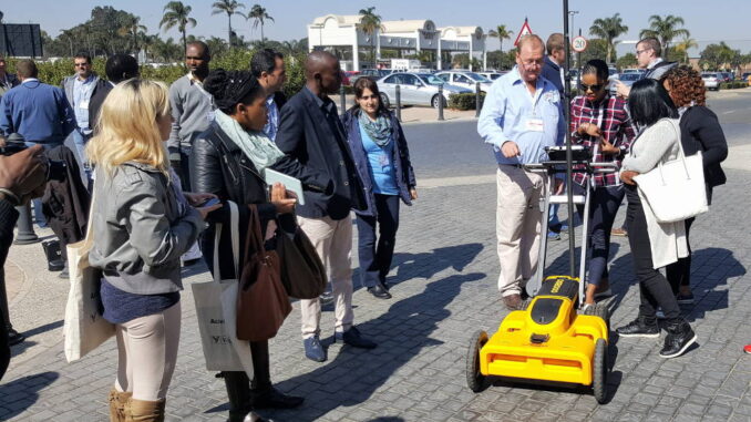 In South Africa there appears to be growing interest in underground utility detection. One of the highlights of the SA Geotech conference in Johannesburg where I had been invited to give a keynote was a demonstration of underground utility detection tools including electromagnetic detection and ground penetrating radar given by Aciel Geomatics. I suspect the organizers might have been surprised by the packed demonstration room. Even more surprising when the organizers asked for a show of hands of who wanted to go outside the convention centre for hands-on experience with the tools, virtually the entire room raised their hand.