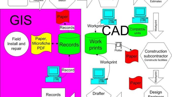 I’ll call one of the problems the “as-built problem”. This problem is often the result of having different teams responsible for engineering design and maintaining as-builts or records. The engineering design folks typically use a CAD tool to design network infrastructure. The records folks use a traditional GIS application to maintain a record of the network infrastructure after it is constructed. The problem arises because almost invariably the engineering design deliverable is a piece of paper called a construction drawing. (It is actually paradoxical that the engineering design team uses sophisticated digital design tools, but the end result is a very old-fashioned piece of paper. If you are familiar with mechanical design, there is a parallel situation with what are called aperture cards.) The construction drawing is used by the construction contractor to build the network infrastructure. After construction is complete, the construction drawing comes back to the records team as a piece of paper called an as-built, which may have been marked up or red-lined because the contractor may have had to make minor changes to the original design. A member of the records staff digitizes the construction drawing into the records database. At most organizations there is a backlog of as-builts waiting to be entered into the records database, and the backlog can stretch anywhere from 45 days to several years. Just an aside. I visited a large telco a few years back and asked them about their as-built backlog. Their reply was interesting because they said they didn’t have a backlog. I expressed my surprise and and asked the question a different way, how long does it take as-builts to get into the records database. Their reply was 45 days, which is really quite remarkable for a telco of their size, but underlines how serious the backlog problem is.