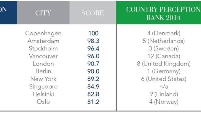 According to the annual ranking by the Global Green Economy Index (GGEI) Vancouver is the world’s fourth greenest city. The most recent GGEI analysis covers 60 countries and 70 cities. It tracks how investors rank the appeal of cities and countries as markets for green investment and it provides a global measure of performance in key efficiency sectors, including buildings, transport, tourism and energy. It also integrates environment & natural capital measuring perceptions and performance in environmental areas like air quality, water, forests and agriculture. According to the GGEI the top three greenest cities are Copenhagen, Amsterdam and Stockholm. The countries corresponding to these cities (Denmark, Netherlands, and Sweden) also rank high, in the top 5 country rankings. Canada is 12th. The Nordic cities have achieved their high standing with the help of their respective national governments, whereas Vancouver has achieved its high green ranking on its own with little help from the federal government.