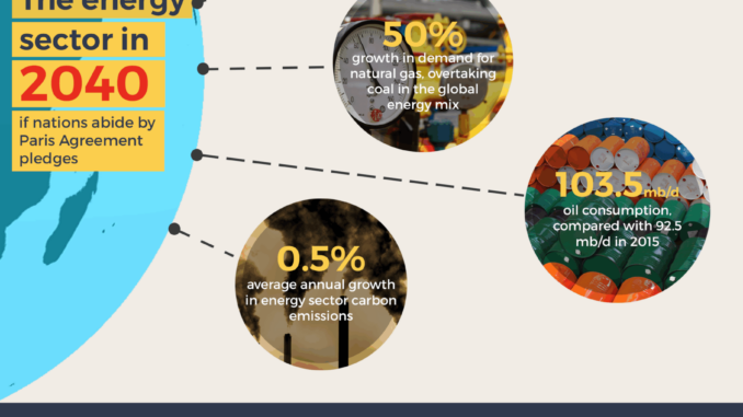 In its main scenario which includes emission reductions from COP21 pledges, the IEA projects a 30% rise in global energy demand to 2040. In 2040 it is projected that 60% of all new power generation capacity will come from renewables. In 2040 renewables are projected to represent 37% of all power generation. By 2040 most renewables-based generation is projected to be competitive without subsidies. Solar PV is expected to see a further 40-70% reduction in cost by 2040 and onshore wind by an additional 10-25%. However, fossil fuel generation continues to be important. Natural gas consumption is projected to rise by 50%. Growth in coal use essentially stops while growth in nuclearpower is limited to China.
