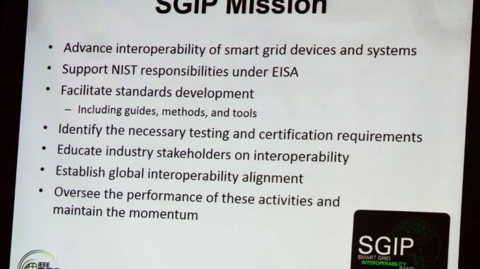 At the IEEE PES Innovative Smart Grid Technologies Conference (ISGT2013) in Washington, I had the opportunity to attend a tutorial on the status of smart grid interoperability standards presented by several people (Mladen Kezunovic, Texas A&M University, Steve Widergren, Pacific Northwest National Lab, and Marty Burns, NIST, and David Wollman, Hypertek for NIST) who are associated with the Smart Grid Interoperability Panel, or SGIP 2.0 Inc, as it is now known in its new incarnation as a private, non-profit.