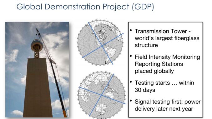 General Rick Deveraux of Viziv Technologies described a way of transmitting electric power wirelessly using a technology called a Zenneck surface wave that orovides a direct wireless connection from a generator to a load. It supports much higher field strengths than conventional Hertzian waves and follows the Earth’s curvature. Viziv is currently working in a global demonstration project that involves building a fiberglass transmission tower and field intensity monitoring stations around the globe. An advantage of this technology is that it could deliver power to people who are currently off grid. Testing of this configuration starts within 30 days and actual power delivery next year.